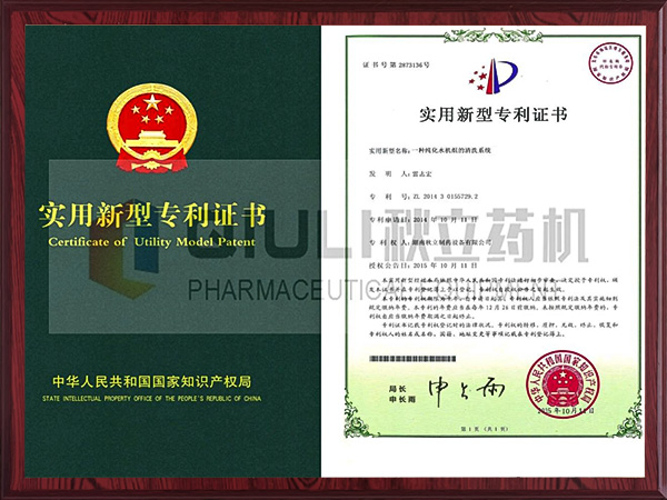 實用(yòng)新型專(zhuān)利證書-純化水機組(zǔ)的清洗係統