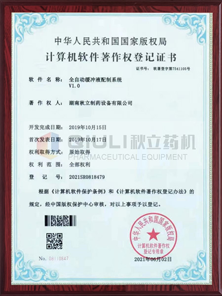 計算軟件著作權證登記證書-全自動緩衝配夜控製係(xì)統