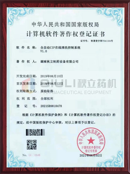 計算軟件著作權證登(dēng)記證書-全自動CIP控製係統