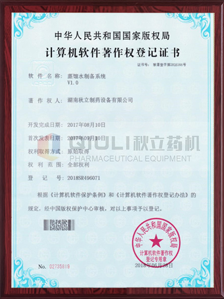 計算機軟件著作權證登(dēng)記證書(shū)-蒸餾水製備係統