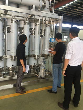 安徽某藥業(yè)來秋立做(zuò)製水設(shè)備工廠驗收,公司(sī)蔣總親自接待,並陪同驗(yàn)收領導(dǎo)一起對注射用水製備和分配係統、純蒸汽發生器、純化(huà)水分配係統等(děng)機組進行細致的查看和核對,驗收過程進行的相當順利,驗收領導對秋立設備表示認可(kě),以下是此次驗收工作照片: